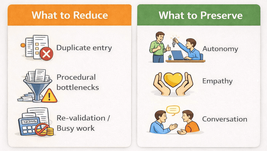 Good design doesn’t eliminate responsibility. It removes unnecessary burden while leaving room for the work that actually requires context, care, and judgment.